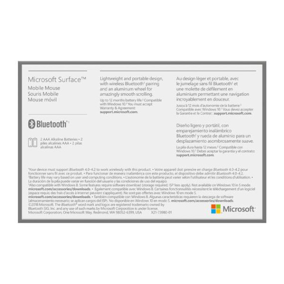 Item arrived sealed and in new condition - I was surprised at how light the mice is in relation to its size. It almost felt like a toy but dont let this featherweight pointing device fool you, its a fully functional mouse. - Tracking accuracy is decent. I definitely wouldnt play fast-paced action shooters with this thing. But for productivity, its great. - I have yet to test the Bluetrack technology that claims to work on most surfaces as I dont have any glass tabletop so I cant comment on their claims - Its easy to connect, just pair it with your Bluetooth enabled PC by long pressing the Bluetooth button (which is also on/off) and its done. - clicking noise is noticeable but muffled. So it doesnt really bother me. - I dont know how long the battery life will last. I have yet to test that. Overall, its a perfect travel mice for your Surface device and complements the cobalt blue keyboard or you can mix and match a combination of colors.