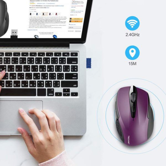 Make sure this fits by entering your model number. Plug & Play - Comes with a tiny USB Nano receiver(stored within the back of the mouse) , just plug it into your PC and then forget it. 5 Adjustable DPI Level (2600/2000/1600/1200/800) - choose your own cursor speed. 2.4GHz Wireless Mouse- Ensures reliable connection with an increased working distance of up to 33' (15m) and eliminates delays, dropouts and interference. Contoured shape with soft rubber grips provide all-day comfort. TeckNet Tru-Wave Technology - Provides precise, smart cursor control over many surface types. TeckNet Co-Link technology – after pairing there’s no need to re-establish pairing after a signal loss or shutdown. Hassle-free Design - Up to 24-months battery life with a battery level indicator. Smart auto-sleep mode saves power (battery life may vary based on user and computing conditions). Compatible with Windows XP, Vista, 7, 8, 8.1,10 and Linux. Works with Notebook,Chromebook, PC, Laptop, Computer, and more.(batteries are NOT included)