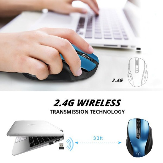 VicTsing MM057 2.4G Wireless Portable Mobile Mouse Optical Mice with USB Receiver, 5 Adjustable DPI Levels, 6 Buttons for Notebook, PC, Laptop, Computer, MacBook - Blue