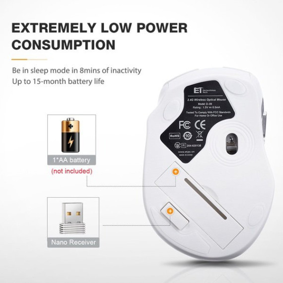 Make sure this fits by entering your model number. 5 ADJUSTABLE CPI & 2 POLLING RATE. 800,1200,1600,2000,2400, easily change the cursor sensitivity depending on your activity. 2 polling rate: 125Hz and 250Hz. Comes with a Nano receiver (stored in the back of the mouse). No need any driver, plug and play directly. STRONG DURABILITY & LONG WORKING DISTANCE. Passed 5,000,000 times keystroke test to guarantee extra durability. 2.4GHz wireless technology and professional gaming chip (PAW3212) ensure longer working distance, reaching up to 33ft. MAXIMUM HAND-FEELING. Contoured shape, sweat-resistant and skin-friendly finish are for maximum comfort and support. The thoughtful ring and little finger rest provide extra comfort. The sturdy scroll wheel with rubber makes sure that your hand will not slip when scrolling. EXTREMELY LOW POWER CONSUMPTION. This wireless computer mouse will be in sleep mode in 8 minutes of inactivity. Press any button to wake it up. Note: powered by 1*AA battery (not included). WIDE COMPATIBILITY. Well compatible with Windows7/8/10/XP, Vista7/8 and Linux etc. Fits for desktop, laptop, PC, Macbook and other devices. This wireless mouse enjoys 12-month worry-free warranty.Notice,the side buttons are not available for Mac OS,but the other function can be used normally.
