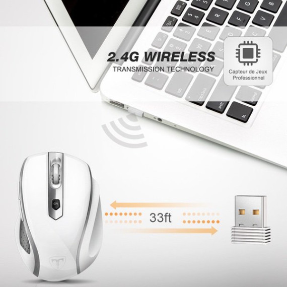 VicTsing MM057 2.4G Wireless Portable Mobile Mouse Optical Mice with USB Receiver, 5 Adjustable DPI Levels, 6 Buttons for Notebook, PC, Laptop, Computer, MacBook - White