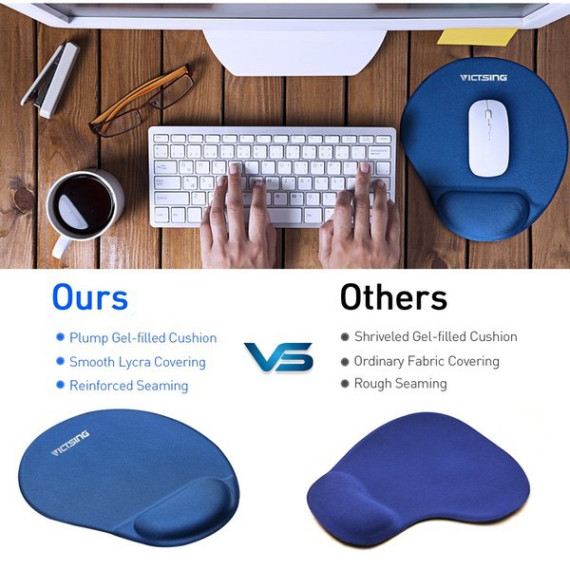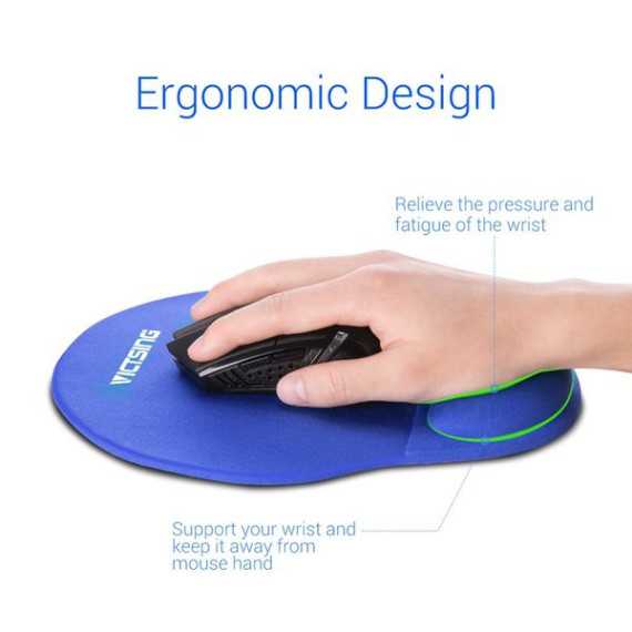 What stood out about this mouse pad from VicTsing was the quality and the wrist support which is made of gel and reminds me of the gel wrist support I use to purchase for use with the keyboard, gel wrist support is very comfortable not too high up like I like it and supports just right, its like the arm of your chair and no wrist fatigue after using this, I was very surprised also has a nice wide pad which I like tremendously as some pads dont give you enough room to move around and you feel as though you are limited to move your mouse around therefore your mouse tends to come off the pad all together and end up on your desk I would recommend this mouse pad and for the price you really can not beat the size of this pad, it also features a non skid backing, a tacky back type of material
