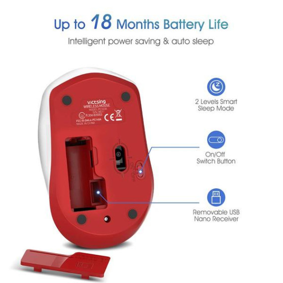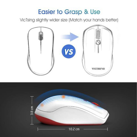 Make sure this fits by entering your model number. ✔【The most comfortable hand-feeling.】 slightly wider size and symmetric design make this mouse suit both of your hands, easier to control. The special grooves on left and right buttons help relieve fingers fatigue. Contoured shape and sweat-resistant surface provide extra comfort. ✔【Advanced 2.4G wireless connection.】 deliver a powerful, reliable 2.4GHz wireless connection with high anti-interference performance. The effective transmission distance is up to 32.8ft/10M. A Mini USB receiver(stored in the battery slot) supports plug and play, no extra driver needed. ✔【3 adjustable DPI levels.】 800, 1200, 1600, Easily switch the cursor sensitivity depending on your activity to meet different using demands. High precision optical Mouse for quick tracking and precise movement allows easy operation on cloth, paper and tabletop. ✔【Extremely low power consumption.】 include a switch button on the back of this mouse to save power. And it will enter sleep mode after 10 minutes of no-operation. Press any button to wake it up. Note: powered by 1*aa Battery of about 12-month lifespan (not included). ✔【Portable & durable & wide COMPATIBILITY.】 USB receiver stays in your PC USB port or inside the wireless mouse when not in use. Tested over 3, 000, 000 times click lifespan. Abs engineering plastic material for anti-wear resistance. Well compatible with Windows 2000/XP/Vista/7/8/10, Mac OS.