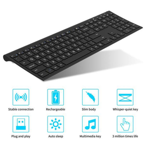 Make sure this fitsby entering your model number. STABLE CONNECTION: 2.4 GHz wireless provides a powerful, reliable connecton up to 10m without any delays. 2 in 1 Nano receiver unifies the keyboard and mouse connections into one USB port, plug and play quickly COMPACT AND SLIM: Ultra slim (5.5mm) keyboard looks more stylish and elegant. High-End Scissor Switch design provides a better tactile response and comfortable and whisper quiet typing experience Features RECHARGEABLE AND AUTO SLEEP MODE: Built-in rechargeable battery supports 35-hour continuous working / standby 30 days and only takes 2 hours to get the keyboard fully charged. It can automatically enter into sleep mode in order to save energy HOT KEYS AND COMPATIBILITY: The full size keyboard includes fast-access hot keys, versatile function keys and number pad which can improve you work efficiency. Compatible with Computer, Laptop, Desktop, PC, Notebook, Windows XP / Vista / 7 / 8 / 10 or later ADJUSTABLE DPI AND ERGONOMIC DESIGN: 3 DPI levels (800/1200/1600 DPI) allows you to change the cursor sensitivity easily and track more smoothly over a variety of surfaces. Contoured shape fits your hands perfectly, reducing hand fatigue.