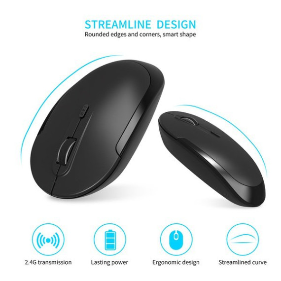 I had been looking for a compact but sensitive keyboard and mouse for a while that was both responsive and sturdy. This wireless combo fills the bill with me, with only a few reservations. I happened on this at Amazon at a very reasonable price for what it does. First of all, I am a retired computer engineer and I am probably much more critical of computer devices than most people. A great deal of my time is spent on a computer still. I have average sized hands and this is just perfect in size for me. From the top of the keyboard function key row to the bottom of the space bar row, it takes up about an inch less in physical real estate than typical KBs. The same is true of the keyboard keys from left to right, including the number pad and directional keys. However there is no “unused space” on the left or right, top or bottom of the device. It is compact but does not short change the typing area. This was designed for Windows. I tried it on both Windows 7 and Windows 10, the oldest supported version of Windows and the latest version. It was very slow to load the driver on W7 and then find the dongle receiver to activate; perhaps 3 minutes total. Both computers would fall into the range of very fast and high power. The W10 computer was about a minute. The wireless frequency is in the 2.4G range, which is also active with MANY other devices. I have many of those potentially interfering devices active all the time. From the first effort, there was no interference with any other device. My previous KB and mouse were a Microsoft combo; excellent in performance but bulky and somewhat fragile. This KB is not fragile in any way. I would say it is beyond sturdy but perhaps not indestructible. I found it interesting that this is a “sealed” unit. There are NO SCREWS on it for entry into the inside. Hence, there are no user changeable batteries; it comes with an internal rechargeable battery, a USB charging cable (included) and a very small plug on the end near the numeric pad for charging. The keyboard itself is very thin and in my (humble) opinion, very friendly and lightweight. There are no adjustable feet on the bottom to modify the angle of the typing surface in relationship to the desk. For me, I saw no need to adjust it as it was very comfortable in the native natural angle. It does have anti-skid pads on it and even on a slippery surface will not slide. The thickness of the KB is only about a quarter of an inch in the typing area (slightly thicker near the top in order to generate an angle) with the keys themselves up another tenth of an inch. It does have a (very) slight responsive feedback noise when the keys are depressed that is reassuring to touch typists and yet, it is strong enough (with no bounce to the keys) that “key pounders” will have no issues about this KB. For those that like to look at the keys, the characters are VERY visible, particularly the letters. On a scale of 1 to 10 for feel and key “feedback”, I rate this as a very positive 9 and it is probably as good as I have ever seen. Overall look and feel is a 10. I really like it. The key layout is a typical Windows pattern with all the special Windows shortcut keys. It also has shortcuts on the function keys used with the FN key. If you are familiar with a Windows layout KB, you will immediately be at home with this. As far as moving around with this KB, it is EXTREMELY light and simple to carry around; the physical small size fits anywhere nicely, including your lap. All of the typical visual indicators are above the directional key area and the numeric pad, out of the way. The keyboard and mouse driver was nicely in tune with the Windows control program for fine tuning the KB and the mouse; I went through all of the possibilities for both and setup was fully functional. The mouse is also lightweight and relatively small in physical size but unlike the KB, it does use 2 AAA batteries for power in it. This came with no batteries so if you purchase this, buy a package as you will need them to get started. There is no recharge capability on the mouse. The left and right mouse buttons are mirror image interchangeable (though the Windows setup program) for left or right hand mouse operation. The roller button travel length also responds perfectly to the program in setting how much the wheel moves the display. There is also a “mouse travel and movement speed button” (DPI – dots per inch) if the user needs it. I think most users, including me, will probably feel it is overkill to have that type button as that issue can be adjusted in the control program. If the mouse or keyboard determines no device activity for 10 minutes, they will individually enter a sleep mode (nice!) to prolong battery life. A press of a key on the KB or a touch of a button on the mouse will awaken the device in 3 seconds. While in the sleep mode, the devices are “live” and they do use minimum power but awaken quickly and conveniently. Each has a physical switch to turn them off completely. A mouse and a KB are personal devices. I like both of these. Each user must have a certain comfort level with them. In that respect, these are easy to like, in my opinion, for most people. I think both would be gender friendly and perhaps good with young people as well. While I doubt they are unbreakable, they seem to be “tough”. A very good KB and mouse combo of any manufacturer will be near or above $100. This is about half that and it is VERY good or better. I don’t think I would call that disposable but it approaches inexpensive. I felt very comfortable with this combo. I liked it immediately and I am very happy with it in all aspects.
