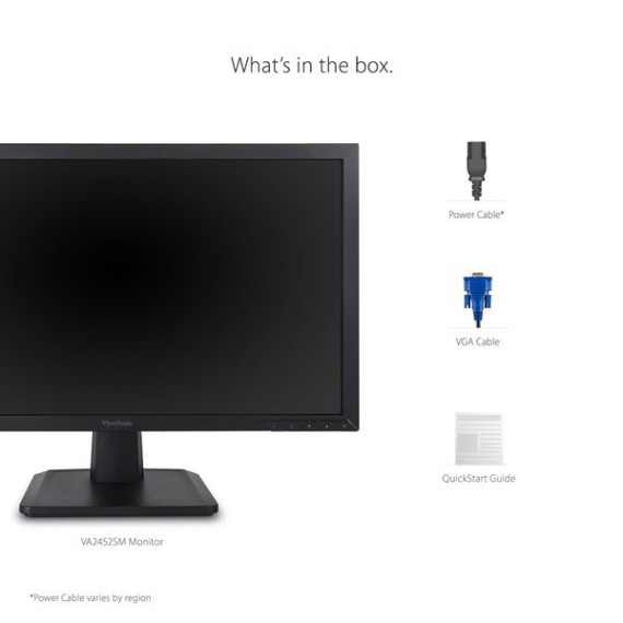 Make sure this fitsby entering your model number. GREAT FOR HOME AND OFFICE: An ideal all-around display for desktop, or laptop SEE THE DIFFERENCE: Razor-sharp clarity and detail with Full HD (1920x1080p) resolution ENHANCED VIEWING COMFORT: Flicker-Free technology and Blue Light Filter for all-day comfort FLEXIBLE CONNECTIVITY: The VA2452SM supports laptops, PCs, Macs, and POS systems with DisplayPort, DVI-D, and VGA inputs INDUSTRY-LEADING WARRANTY: 3-year coverage with access to our US-based customer service team INCLUDED IN THE BOX: LCD Monitor, Power Cable, and VGA Cable