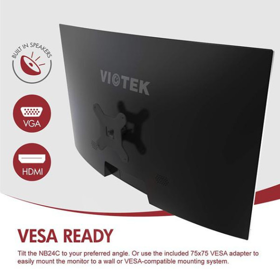 Make sure this fitsby entering your model number. 1920x1080p, 16:9 Widescreen Desktop Monitor – Immerse yourself in a thin-bezel professional monitor with a frameless 1800R LCD curved display and 75Hz monitor refresh rate. Office-Ready Vesa Monitor – Set up your NB24CB computer monitor exactly how you need it. Mount to a wall or VESA-compatible monitor mount using the included 75x75 VESA adapter. Perfect for home or office workstation. GamePlus, FPS/RTS, FreeSync Monitor – Enjoy an ultra-thin monitor display calibrated for gaming with integrated crosshair functionality and Xbox One S/X support. This LED monitor will dramatically reduce input lag and image stutter during gaming. Multiple Connectivity Options – Use the NB24CB as a curved pc monitor on its own, or as a second external monitor, using the high-speed VGA and HMDI 1.4 connection ports (HDMI cable included) 100% U.S.-based Customer Support Team – Available 7 days a week via live-chat, email, and social media support.