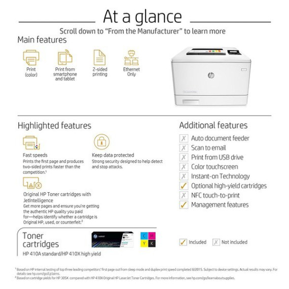 HP LaserJet Pro M452dn Color Laser Printer with Built-in Ethernet & Double-Sided Printing, Amazon Dash Replenishment ready (CF389A)