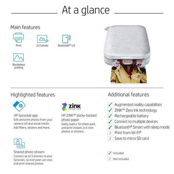 Make sure this fitsby entering your model number. INSTANT PHOTOS ON THE GO – Easily print your favorite adventures on 2x3" sticky-backed photo paper with this luna pearl smartphone-sized photo printer that's designed to easily slip into your pocket, purse, or backpack GET THE PRINT PARTY STARTED – Now you can connect multiple devices so you and your friends can print at the same time – plus the personalized LED light shows you whose photo is printing! Sticker photo paper for use with HP Sprocket Portable Photo Printer Peel-off & sticky-backed photo paper (20 sheet count)