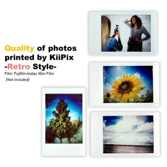 Was happy to get a this kiipix especially when it doesn’t need wifi , battery or a charger. It was easy to use but didnt like how you have to put the phone with the white frame because it had a sticky part that pulls the screen protector but other then that it was easy to function It doesn’t come with film which I end up loosing out because the kiipix didn’t work for me. I brought a 2 pack of 10 films . 6 films didnt print out any images , it printed a blu-ish image with yellow streaks. The 4 other film printed my images but some how had a black shadow border (Note my image was zoom /crop with the white frame to what I wanted printed) So I basically lost money for the films I purchased. Overall , its up to you if you wanna buy it , maybe I had a broken one , who knows ! But it is pretty cool & easy to use !