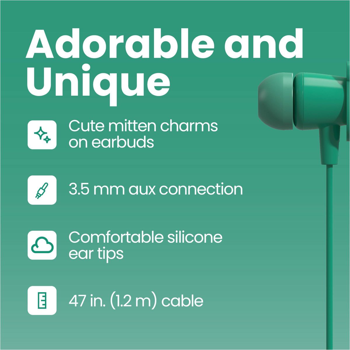These GEMS Figural Earbuds add a touch of fun to your daily listening. These wired earbuds feature adorable mitten charms and a classic 3.5mm connection that works with most phones, tablets, and laptops. The soft silicone ear tips feel comfortable even during long playlists or podcasts, and the 47-inch cable gives you plenty of room to move around. Whether you’re commuting or relaxing at home, the GEMS Figural Earbuds keep your music within reach and style a step above!