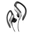 Designed for sports and other active use, the affordable JVC HA-EB75 splash-proof headphones incorporate a soft rubber ear clip that fits around the outer ear to hold the earbud in place. To ensure a comfortable and secure fit, the ear clip is adjustable, with a slide mechanism that offers five different positions to adjust to different size ears. To ensure high quality sound reproduction, a 0.53 in. (13.5mm) neodymium driver in each earpiece provides powerful sound with bass boost earpieces to deliver rich audio quality. Also, the water-resistant design helps protect the headphones from the elements. The headphones come with a 4 ft. (1.2m) friction noise reduction cord and an iPhone-compatible plug. The JVC HA-EB75 Ear Clip headphones come in 3 iPod matching colors: blue, black and silver.