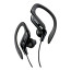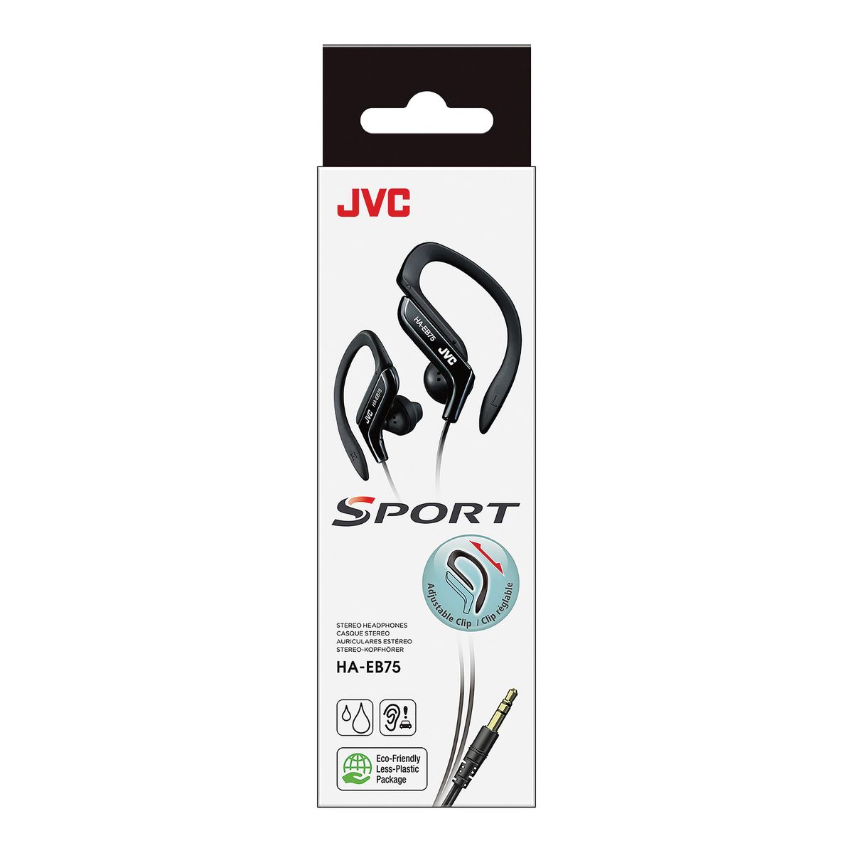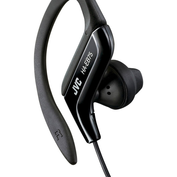 Designed for sports and other active use, the affordable JVC HA-EB75 splash-proof headphones incorporate a soft rubber ear clip that fits around the outer ear to hold the earbud in place. To ensure a comfortable and secure fit, the ear clip is adjustable, with a slide mechanism that offers five different positions to adjust to different size ears. To ensure high quality sound reproduction, a 0.53 in. (13.5mm) neodymium driver in each earpiece provides powerful sound with bass boost earpieces to deliver rich audio quality. Also, the water-resistant design helps protect the headphones from the elements. The headphones come with a 4 ft. (1.2m) friction noise reduction cord and an iPhone-compatible plug. The JVC HA-EB75 Ear Clip headphones come in 3 iPod matching colors: blue, black and silver.