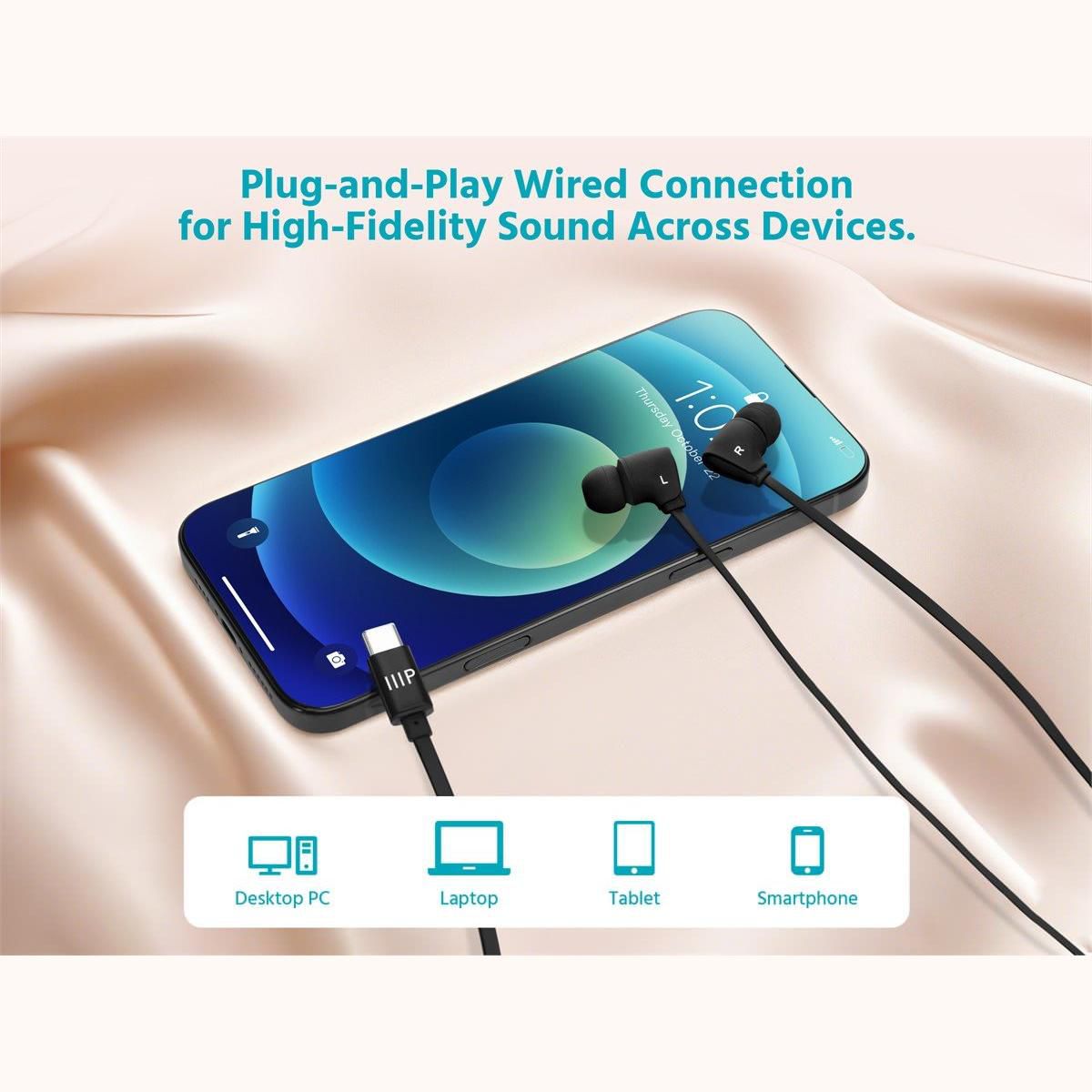 Monoprice Premium USB-C Wired Earbuds with Mic for Smartphones, Tablets, Laptops & Gaming