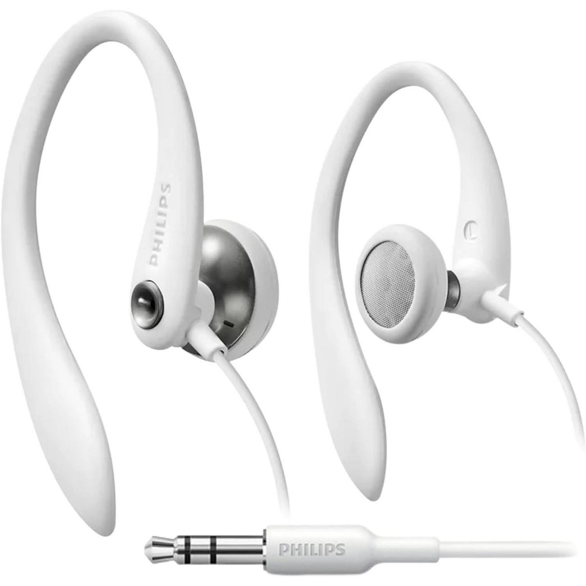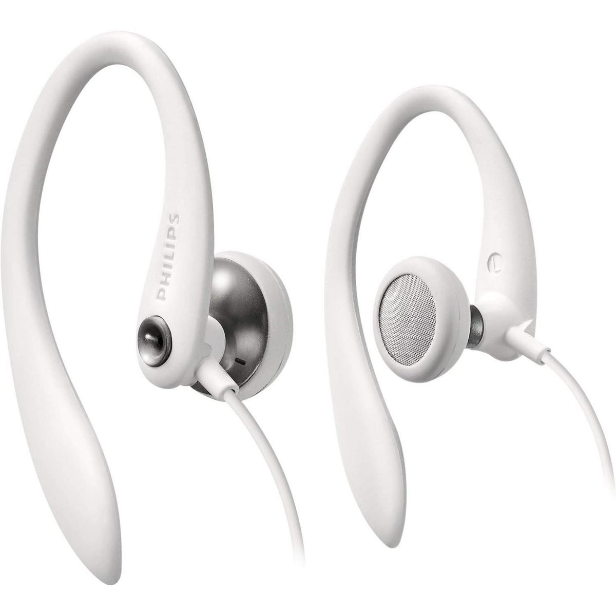 PHILIPS Flexible Earhook Headphones - Secure Fit, Neodymium Drivers, Lightweight, Ergonomic Design, Durable Build, and 3.5mm Jack for Active Use White