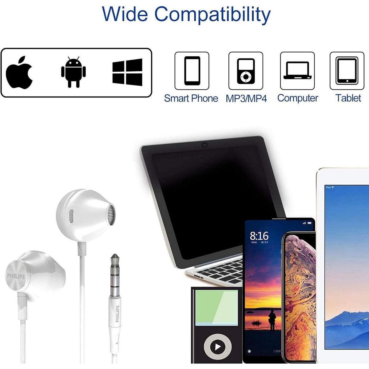 PHILIPS Wired Earbuds - Neodymium Drivers, In-Line Mic, Ergonomic Design, Comfortable Fit, 3.5mm Jack, and Lightweight for Daily Use