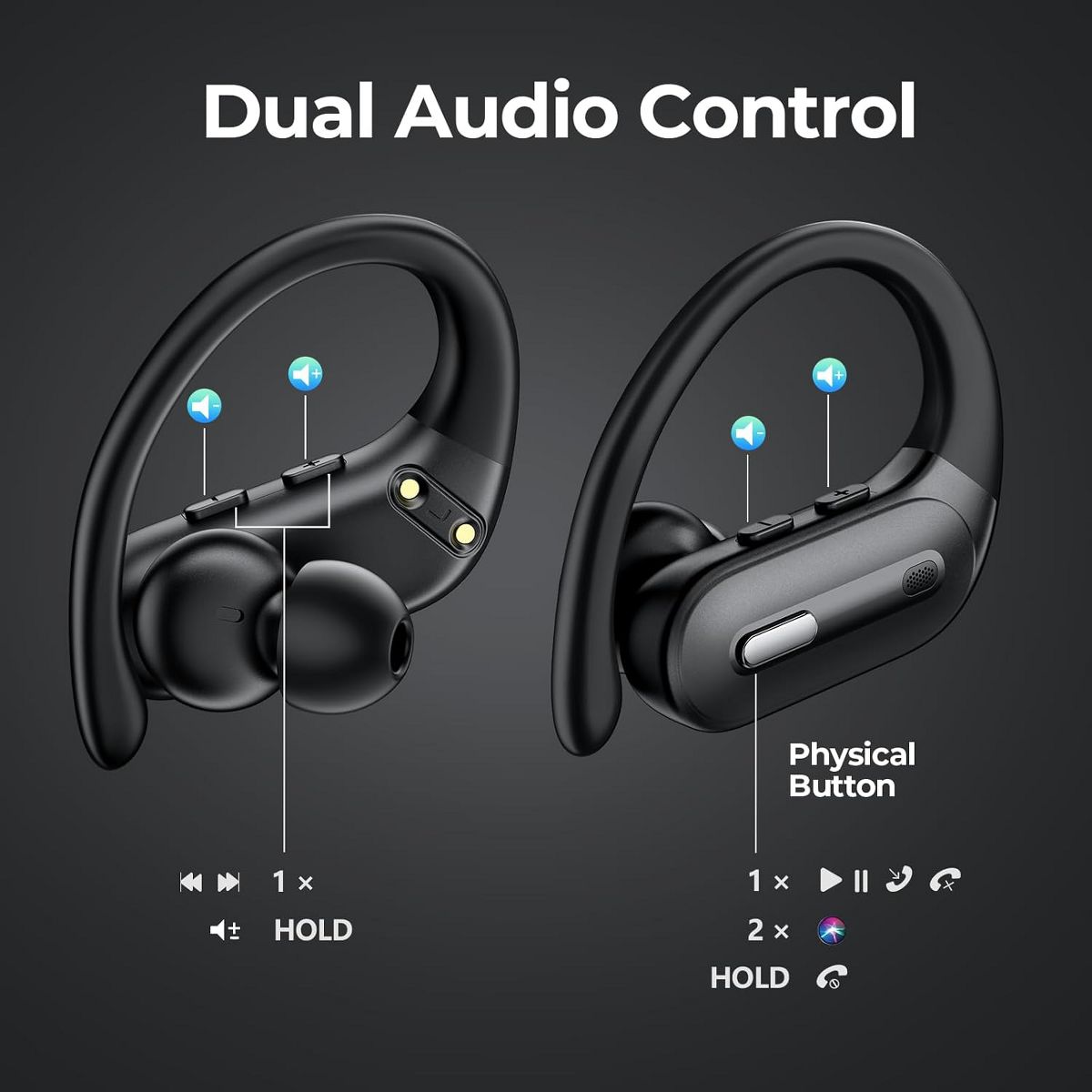 Active Noise Cancelling Wireless Earbuds Bluetooth Headphones 90 Hrs Playtime Ear Buds with Power Display Over-Ear Earphones with Earhooks IPX7 Black