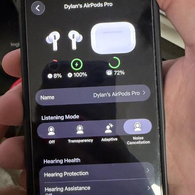 ⁴The Hearing Test and Hearing Aid features are supported on AirPods Pro 2 with the latest firmware paired with a compatible iPhone or iPad with iOS 18 or iPadOS 18 and later. The Hearing Aid feature is also supported on Mac running macOS Sequoia and later.