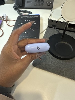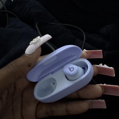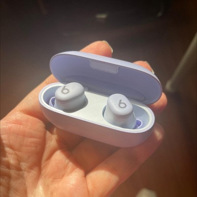 ¹Testing conducted by Apple in April 2024 using preproduction Beats Solo Buds units and software paired with iPhone 15 Pro units and prerelease software. The playlist consisted of 358 unique audio tracks purchased from the iTunes Store (256-Kbps AAC encoding). Volume was set to 50%. Testing consisted of full Beats Solo Buds battery discharge while playing audio until the first unit of Beats Solo Buds stopped playback. Battery life depends on device settings, environment, usage, and many other factors.