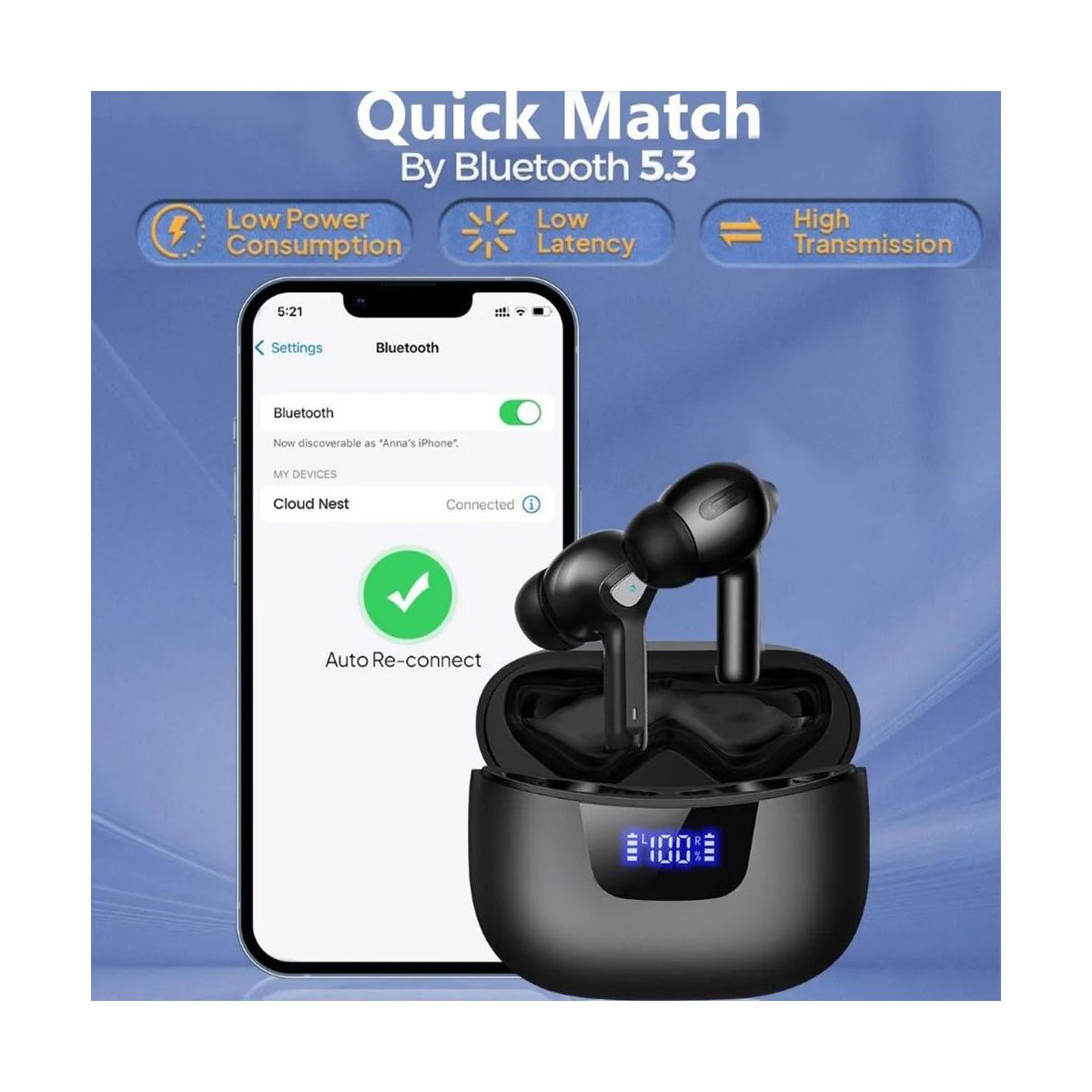 MOVSSOU True Wireless Bluetooth Earbuds LED Display Bluetooth 5.3 Black