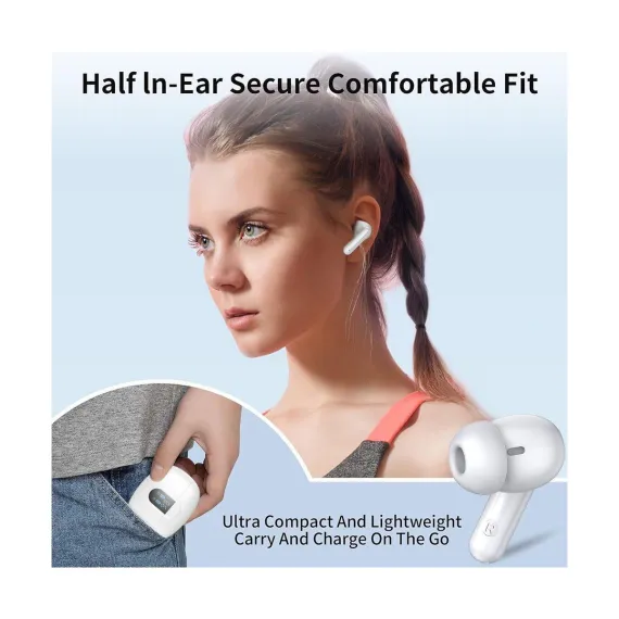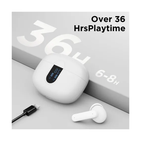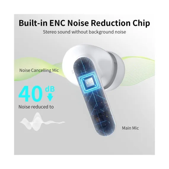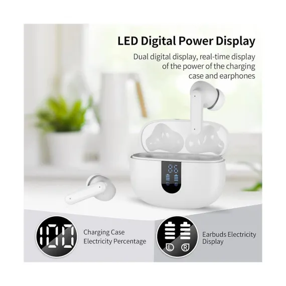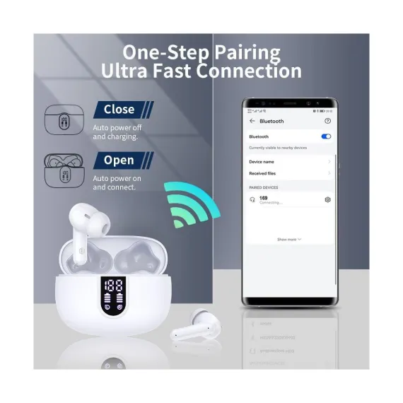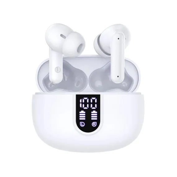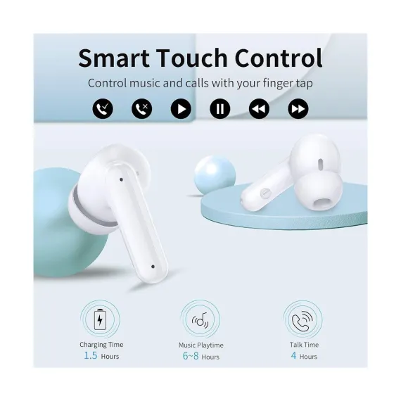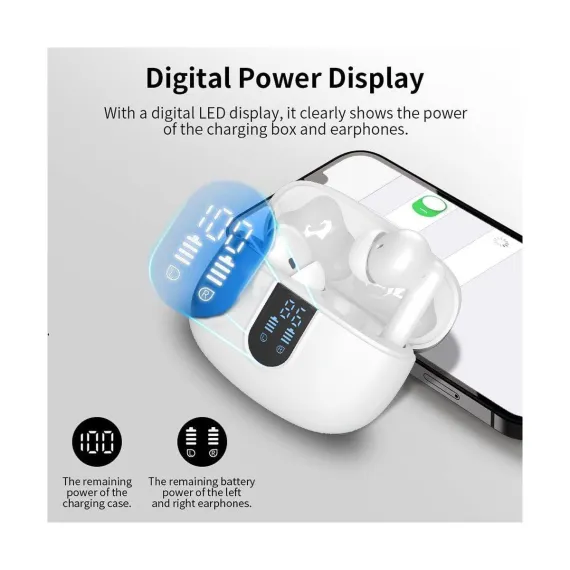 The wireless in-ear earbuds combine intuitive touch controls, exceptional 40-hour playtime, and studio-quality sound for an unparalleled listening experience. The ergonomic design with customizable silicone tips ensures all-day comfort, while the waterproof rating makes them ideal for workouts, travel, or daily commutes. With Bluetooth for seamless connectivity and dual-mic noise reduction for crystal-clear calls, the wireless In-Ear bluetooth earbuds deliver premium performance for music lovers, busy professionals, and fitness enthusiasts alike. The compact charging case adds convenience with rapid charging, ensuring your music never stops. You can enjoy 5-7 hours of continuous playback on a single charge and additional hours from the ultra-portable charging case. With low power, the earbuds can be quickly charged for an additional two hours of use in just 15 minutes. The dual LED display shows the remaining battery percentage of the charging case, and the LED indicator bar displays the charging status of each earbud. Equipped with a Bluetooth 5.4 chip, the wireless earbuds boast a transmission range of up to 15 meters, ensuring a more stable connection and maintaining a low latency. They offer data transfer speeds that are twice as fast as those of Bluetooth 5.3, while consuming 30% less energy.