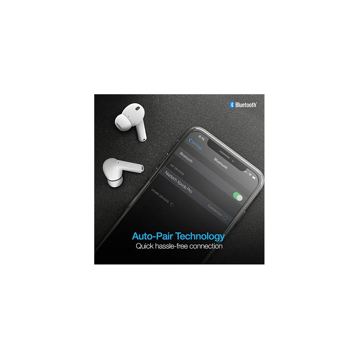 Meet the next evolution of Naztech true wireless: The Xpods are going Pro. Music and calls sound better than ever! The smaller earbuds have customizable tips that form a noise-isolating seal, precision-tuned drivers for rich acoustics, the latest Bluetooth technology for solid connectivity, and 2 microphones with enhanced voice capture technology for clearer conversations. Upgrade and hear the difference.