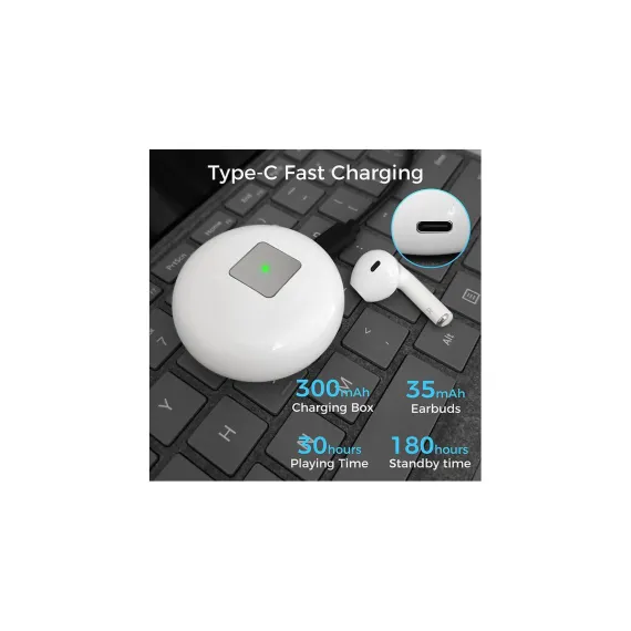 Sungale Wireless Earbuds 5.2 Bluetooth, Noise Cancelling, 30Hrs Playtime, Stereo Sound, IP54 Waterproof, 300mAh Wireless Charging Case