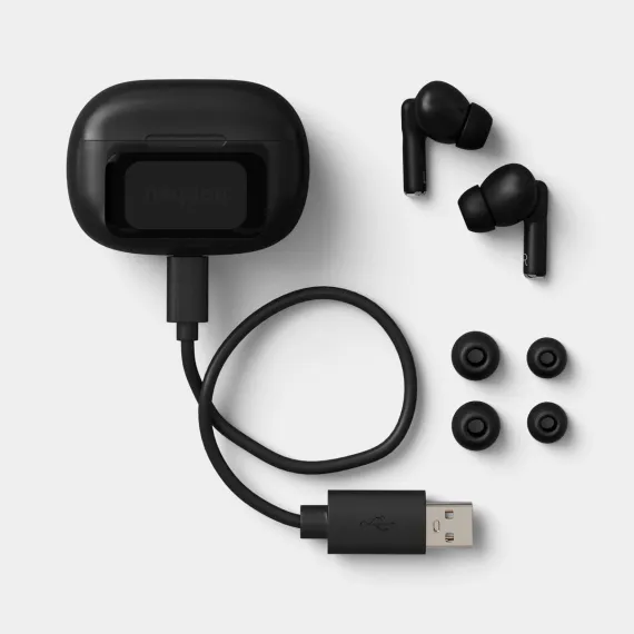 Experience immersive sound with the True Wireless Active Noise Cancelling Earbuds with Screen Poppy from heyday™. These earbuds feature active noise cancellation and a built-in microphone for clear calls. The silicone ear cushions ensure a snug fit, while the true wireless technology offers freedom of movement. With a micro USB connection, these earbuds are easy to charge.