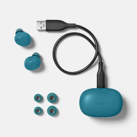 Take your playlist anywhere with the True Wireless Bluetooth Sweat Resistant Earbuds from heyday™. Whether you're powering through a workout or zoning in during a commute, these lightweight earbuds offer a snug, in-ear fit with soft silicone cushions that stay comfortable all day. With up to 20 hours of battery life and a 4-foot USB-C charging cord included, you’re always ready to go. Sweat-resistant and water-resistant, they’re made to keep up with your rhythm, rain or shine. Plus, the built-in mic makes switching from music to calls completely seamless.