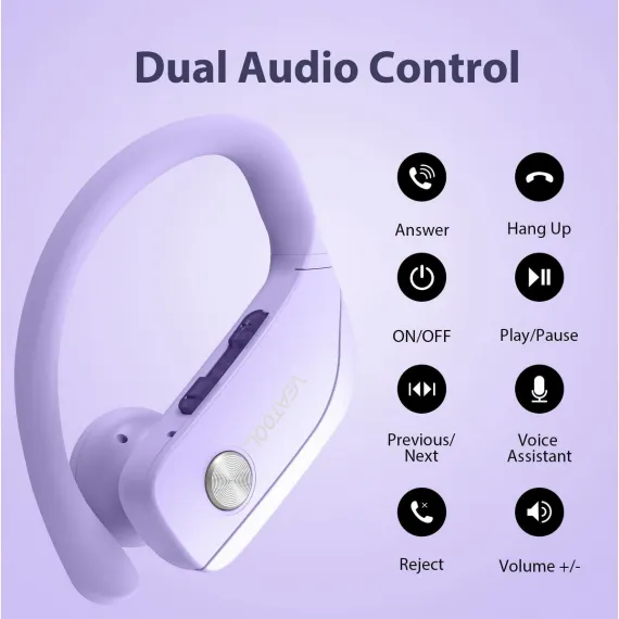 - 【Secure & Comfortable】Designed in the ear-carried shaped and prevent fall off, fit for sports.Thanks to the optional ear tips and flexible earhooks, you won't feel tired or worry about falling out.