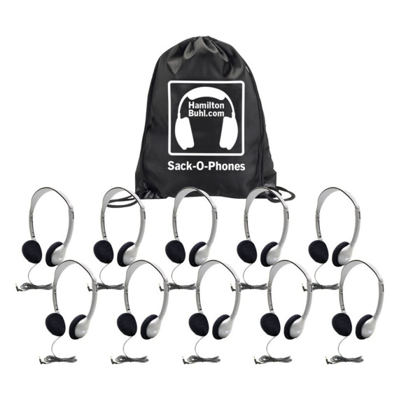 The HamiltonBuhl SOP-HA2 Sack-O-Phones includes 10 Hamilton HA2 Personal Headphones with Foam Ear Cushions. Sack-O-Phones packaging is a unique bag that doubles as a knap sack and holds 5 deluxe or 10 personal headphones. It's a great way to store headphones easily and economically, no need for costly plastic cases for storage. Sack-O-Phones includes (10) HA2 Personal Headphones with Foam Ear Cushions and (1) Sack-O-Phone Carry Bag.Compatible with MP3 Players, Cell Phones / Mobile Devices, Tablets / eReaders, Chromebooks, Computers (Mac & PC), CD Players / Stereos, TVs, and most Gaming Systems.Prevent The Spread of Lice: Built with kid's health and safety in mind, these headphones are designed to combat the spread of head lice in schools. Each headphone comes in its own heavy-duty, write-on, moisture-resistant, sealable bag. When sealed in the bag, lice are killed in 24-48 hours, without the use of chemicals.