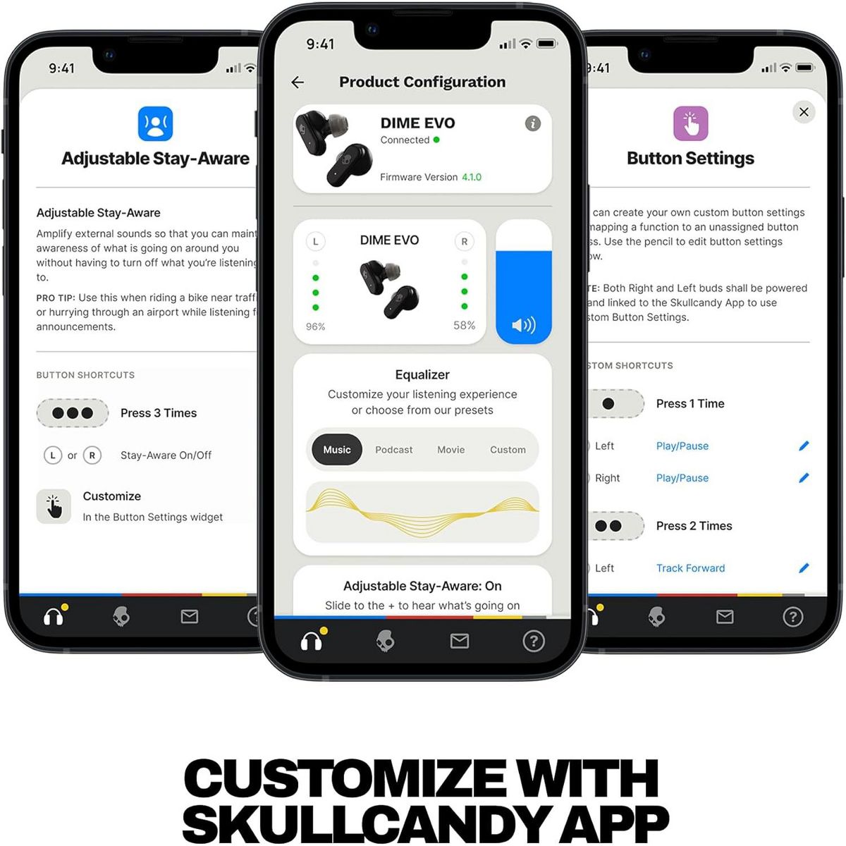 Skullcandy Dime Evo Wireless Earbuds, Bluetooth Headphones, Noise Isolating Fit, Up to 36 Hours Battery, Microphone, Easy Carry with Clip-Anywhere