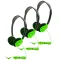 HamiltonBuhl® Personal On-Ear Stereo Headphone, Green, Pack of 3