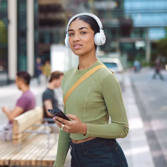 JBL Live 670NC headphones deliver powerful JBL Signature Sound in a comfortable on-ear headband style. When you’re deep in your flow True Adaptive Noise Cancelling with Smart Ambient technology keeps you free from distractions. Then when you want to keep an ear open to the world around you you can stay aware as you continue listening to your favorite playlist—or even have a conversation without taking the headphones off. Easily access your preferred voice assistant with a tap on the ear cup to cue up a song text your friend check the weather and much more. You’ll enjoy 65 hours (50 hours with BT+ANC on) of music streaming. And if you still need more a 5-minute speed charge gets you another four hours. The JBL Live 670NC can connect with two Bluetooth® devices simultaneously so you’ll never have to miss a call even if you’re watching a movie on your tablet.