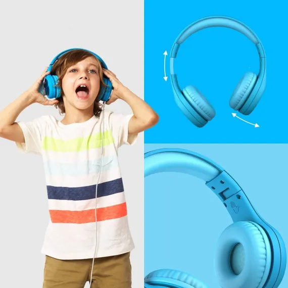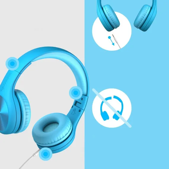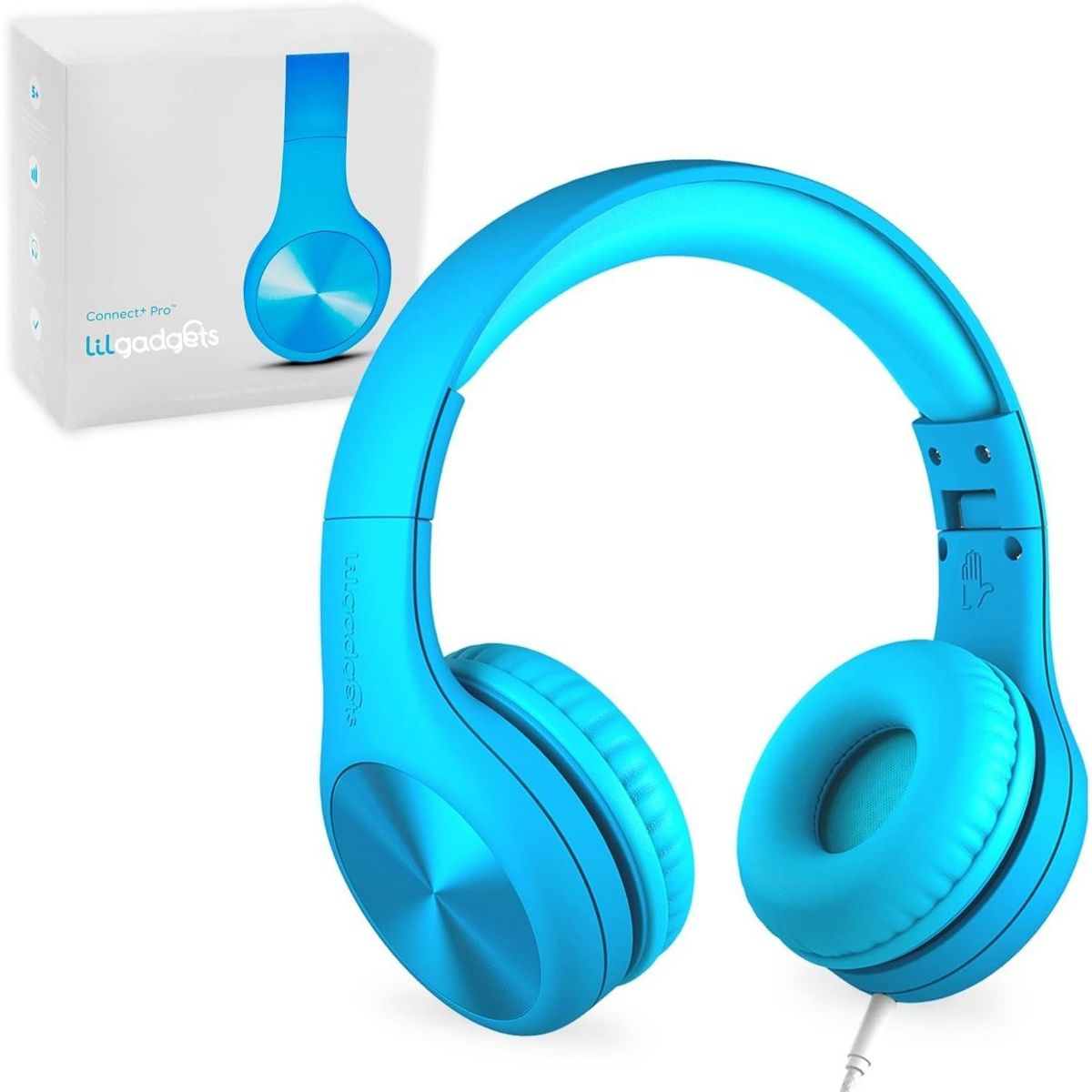 LiLGadgets Connect+ Pro Kids Headphones with Mic and Cord, SharePort Technology, Volume Limit 93db Wired Inline 3.5mm Jack- Blue