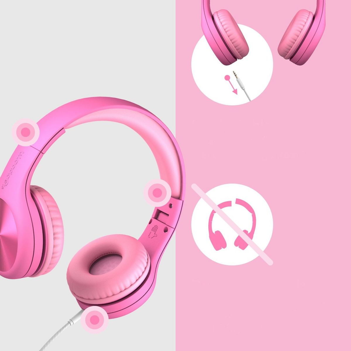 LiLGadgets Connect+ Pro Kids Headphones with Mic and Cord, SharePort Technology, Volume Limit 93db Wired Inline 3.5mm Jack- Pink