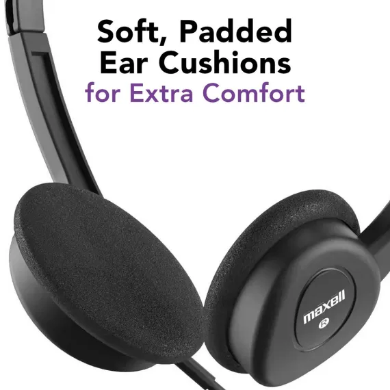 The Maxell® HP-101 Wired Headphones have a lightweight, on-ear design, ideal for extended use. The digital chipset allows them to be used with all USB-C® devices, including your laptop or cell phone. They feature an in-line microphone, adjustable headband, and a longer-length 6-ft. cord for added mobility. The modern and comfortable design make them ideal for schools, the office, or remote learning.