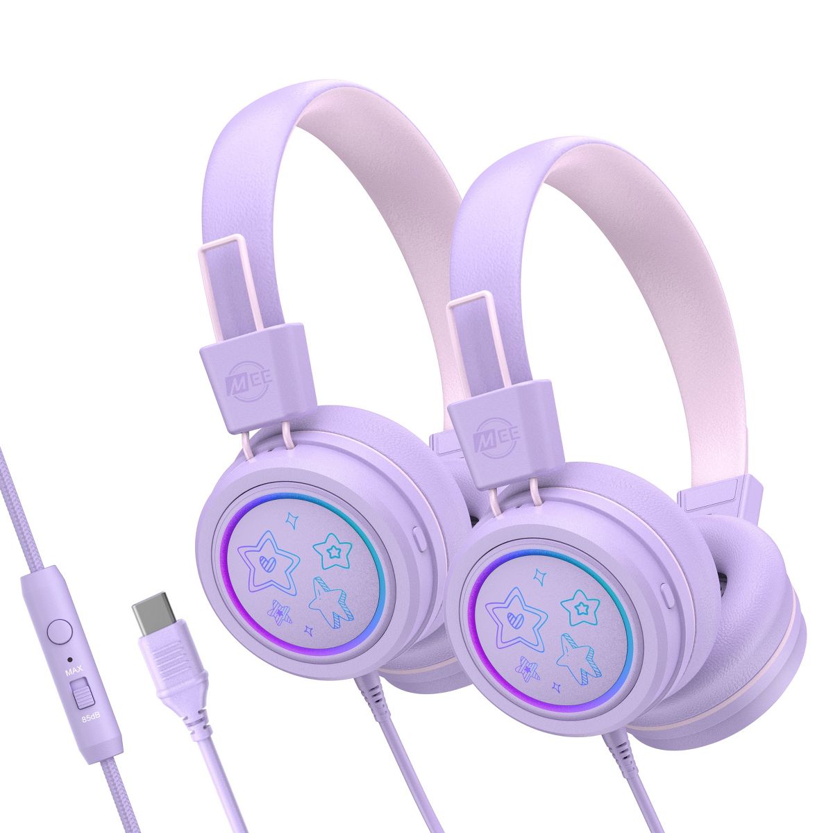 The MEE audio KidJamz KJ55U headphones are designed for kids, featuring volume-limiting technology to protect young ears and build healthier listening habits, while delivering clear, high-quality sound. These lightweight, durable headphones include soft, comfortable ear cushions and an adjustable headband for a secure fit. The built-in LED lights add a fun touch, making them perfect for travel, school, or everyday use. Safe, stylish, and kid-friendly, the KidJamz KJ55U makes listening both fun and safe. Perfect for your back to school shopping list, the KidJamz KJ55U are awesome go-to headphones with a USB Type C jack to use with laptops, Chromebooks, and other devices with USB-C connectors including iPhone 16 / 16 Pro / 15 / 15 Pro, iPad, and other smartphones/tablets.