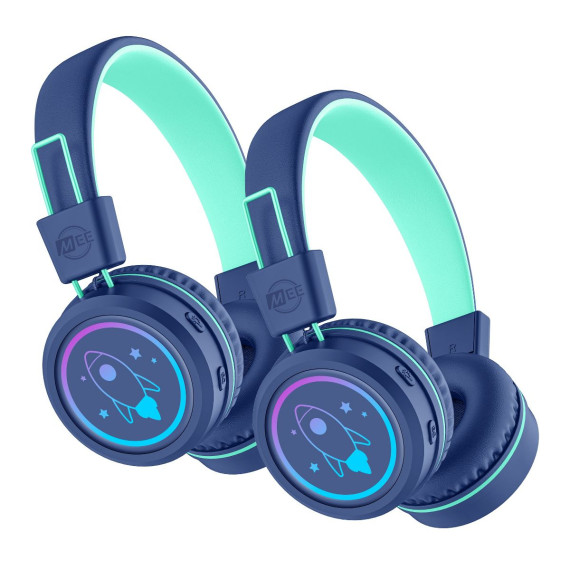 MEE audio KidJamz KJ55BT Safe Listening Bluetooth Wireless Headphones for Kids with LED Lights (2 Pack, Blue)