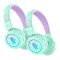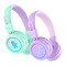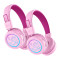 The MEE audio KidJamz KJ55BT are Bluetooth wireless headphones designed for kids, featuring built-in volume-limiting technology to protect young ears and build healthier listening habits. With an 85dB safe-listening mode, they provide high-quality sound without the risk of hearing damage. The lightweight, durable design ensures all-day comfort, while fun LED lights add an extra touch of excitement. A built-in microphone allows for hands-free calls, online learning, or gaming. Other features include 4 distinct audio modes to better suit the mood and music, 8 different LED light modes, and a travel mode which temporarily disables the volume-limiter with a hidden button combination so the KidJamz can be used in noisy environments, such as while traveling. Headphones can be used either wired, via detachable standard 3.5mm aux cable, or wirelessly, via Bluetooth with up to 40hrs of battery life. Ideal for home, school, or travel, KidJamz KJ55BT headphones combine safety, style, and convenience for kids.