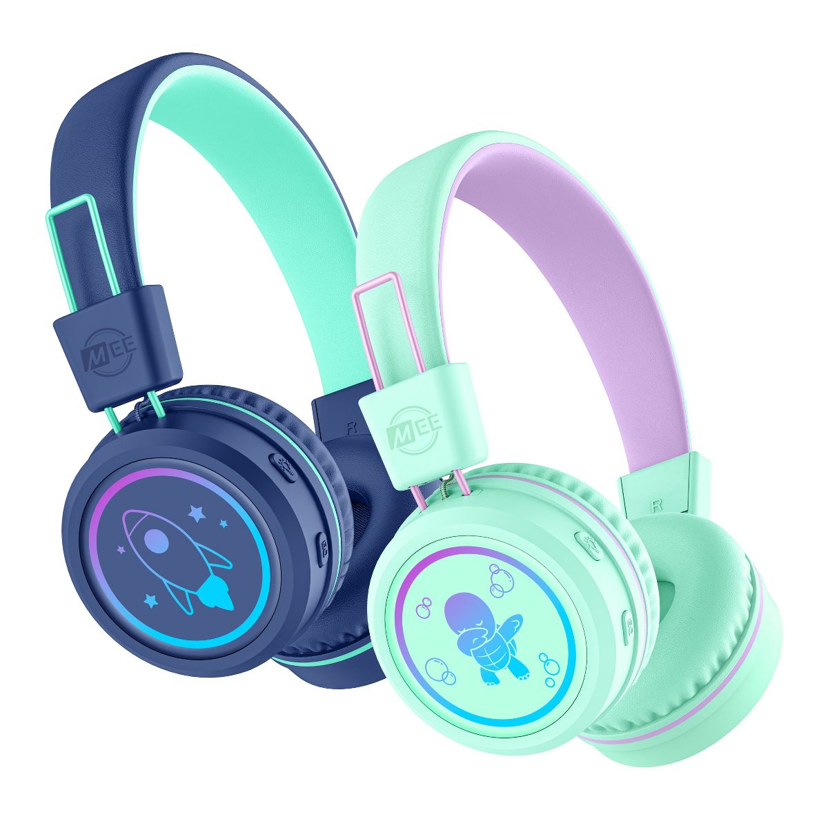 The MEE audio KidJamz KJ55BT are Bluetooth wireless headphones designed for kids, featuring built-in volume-limiting technology to protect young ears and build healthier listening habits. With an 85dB safe-listening mode, they provide high-quality sound without the risk of hearing damage. The lightweight, durable design ensures all-day comfort, while fun LED lights add an extra touch of excitement. A built-in microphone allows for hands-free calls, online learning, or gaming. Other features include 4 distinct audio modes to better suit the mood and music, 8 different LED light modes, and a travel mode which temporarily disables the volume-limiter with a hidden button combination so the KidJamz can be used in noisy environments, such as while traveling. Headphones can be used either wired, via detachable standard 3.5mm aux cable, or wirelessly, via Bluetooth with up to 40hrs of battery life. Ideal for home, school, or travel, KidJamz KJ55BT headphones combine safety, style, and convenience for kids.