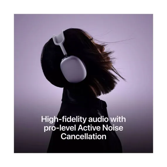 AirPods Max reimagine over-ear headphones. An Apple-designed driver provides high-fidelity audio. Every detail, from canopy to cushions, has been designed for an exceptional fit. Industry-leading Active Noise Cancellation blocks outside noise, while Transparency mode lets it in.