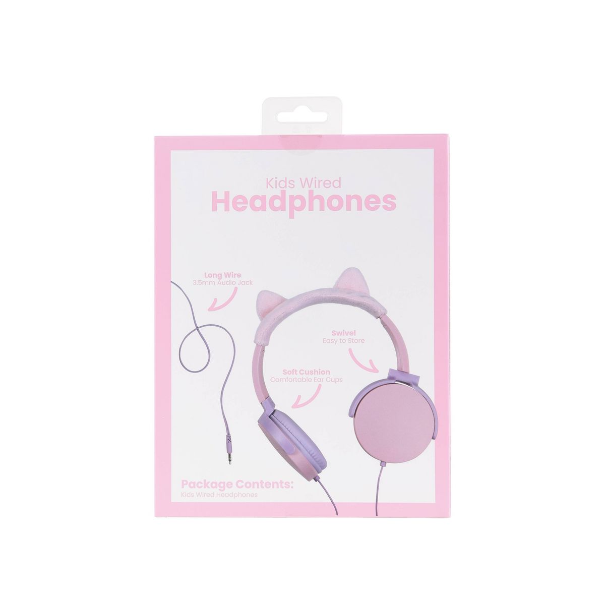 Make listening fun and kid-friendly with the Cat Ear Kids Over-Ear Headphones. Designed with soft, cushioned ear cups and a built-in volume limiter, these headphones provide a comfortable and safer listening experience for young users. The long 3.5mm wired cable connects easily to most devices, including tablets and laptops. Swivel ear cups make them simple to store, pack, and carry. Perfect for music, learning apps, movies, and everyday use, these headphones bring comfort, convenience, and playful style together.