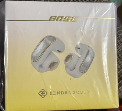 Bring timeless elegance to your listening experience with the Bose x Kendra Scott Ultra Open Earbuds in Ivory Mother-of-Pearl. A luminous natural material brings an iridescent glow, turning your earbuds into a jewelry-inspired statement. With Bose OpenAudio technology, enjoy rich, private sound while staying completely aware of your surroundings. Immersive Audio makes every playlist feel alive. Designed for comfort and stability, they’re light enough for all-day wear and secure enough for every activity. It’s the signature style of Kendra Scott that you love with the sound innovation you expect from Bose. Sound has never looked so stylish.