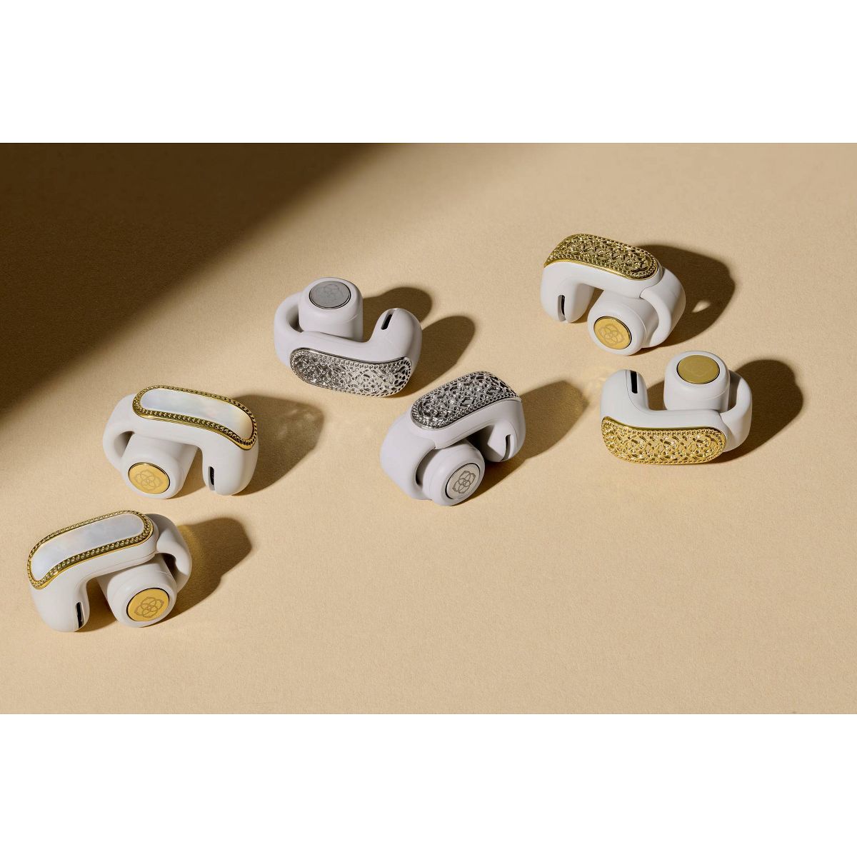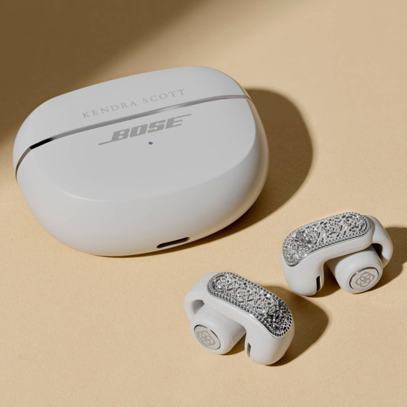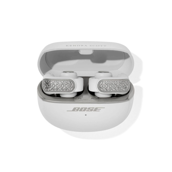 Elevate your listening experience with the Bose x Kendra Scott Ultra Open Earbuds in Rhodium Filigree. This rhodium-inspired finish captures intricate detailing, inspired by the Kendra Scott medallion, for a truly trendy set of earbuds . With Bose OpenAudio technology, enjoy rich, private sound while staying completely aware of your surroundings. Immersive Audio takes it further, creating a spacious, lifelike soundstage that makes every playlist feel alive. Designed for comfort and stability, they’re light enough for all-day wear and secure enough for every activity. It’s the signature style of Kendra Scott that you love with the sound innovation you expect from Bose. Sound has never looked so stylish.