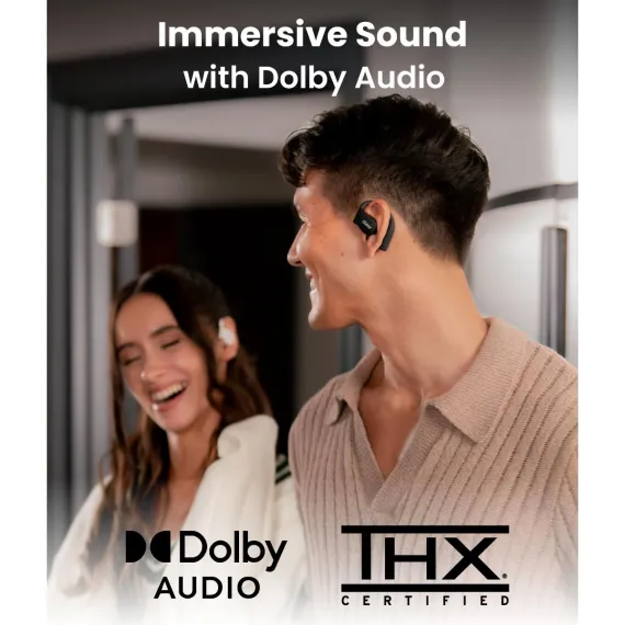 The Cleer ARC 4 Open-Ear Earbuds deliver premium sound and all-day comfort with a lightweight, open-fit design that keeps you aware of your surroundings. Featuring Dolby Atmos® and THX® Certified audio, Snapdragon Sound™, and a powerful 16.2 mm driver, ARC 4 provides clear, detailed sound with strong bass. Dual microphones with Qualcomm cVc™ Gen 8 improve call clarity, while Bluetooth® 5.4 Multipoint lets you stay connected to two devices at once.