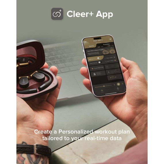 Cleer ARC3 Sports Pro Open Ear Headphones Heart & Blood Oxygen Monitor Dolby Audio Snapdragon Sound True Wireless Earbuds, 40Hr, BT 5.4, IPX 7 - Black
