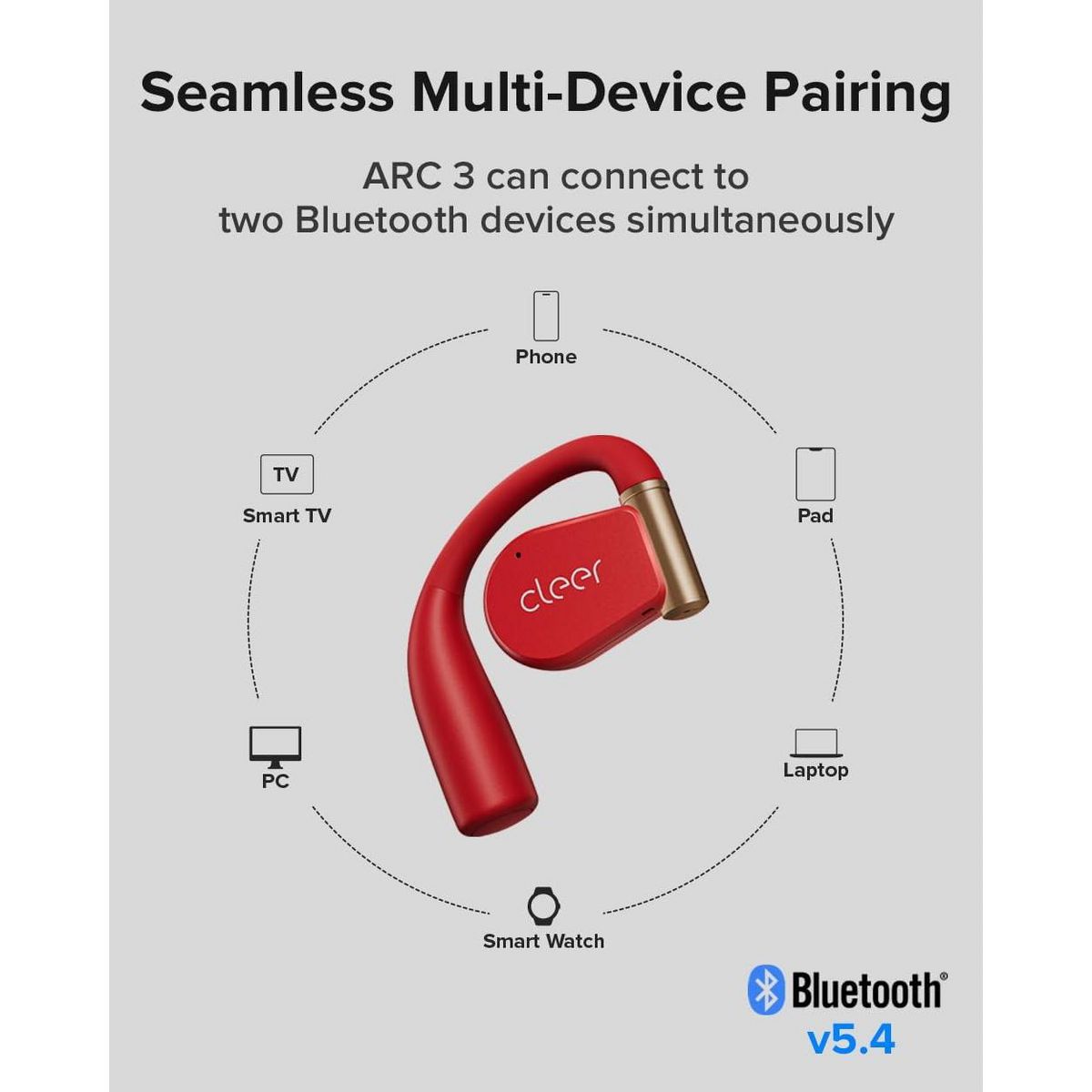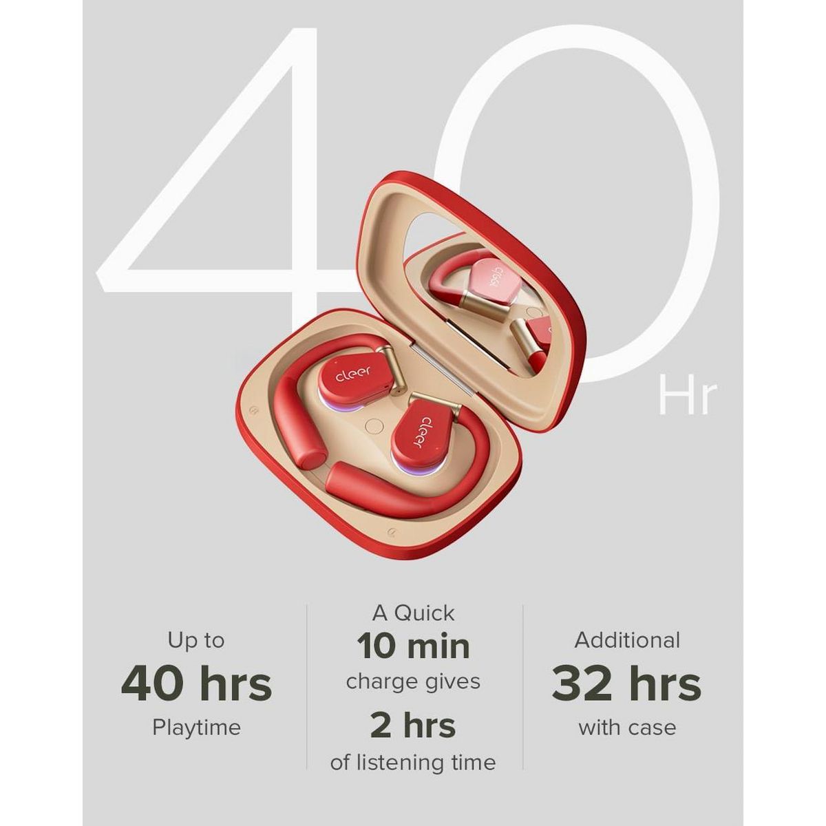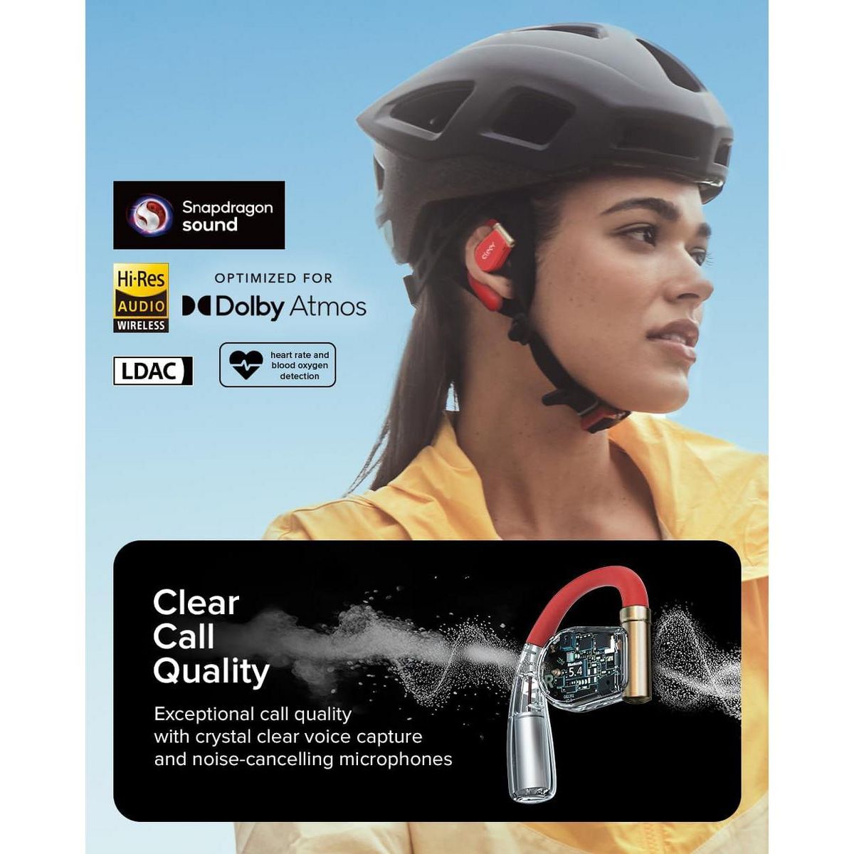 Arc 3 Sport Pro are our purpose built open-ear sport earbuds for active lifestyles. With a secure ear-hook design, the Arc 3 Sport Pro stay comfortably secure while keeping you aware of your surroundings. Track your workout performance with the built-in SPO2 sensor, measuring your blood oxygen levels and heart rate. Enjoy uncompromised audio quality and immersion with Snapdragon Sound and Dolby Atmos optimization. Get long term use with 8hrs of battery life per charge, and a Smart Touch Screen charging case that holds an additional 32hrs of battery.