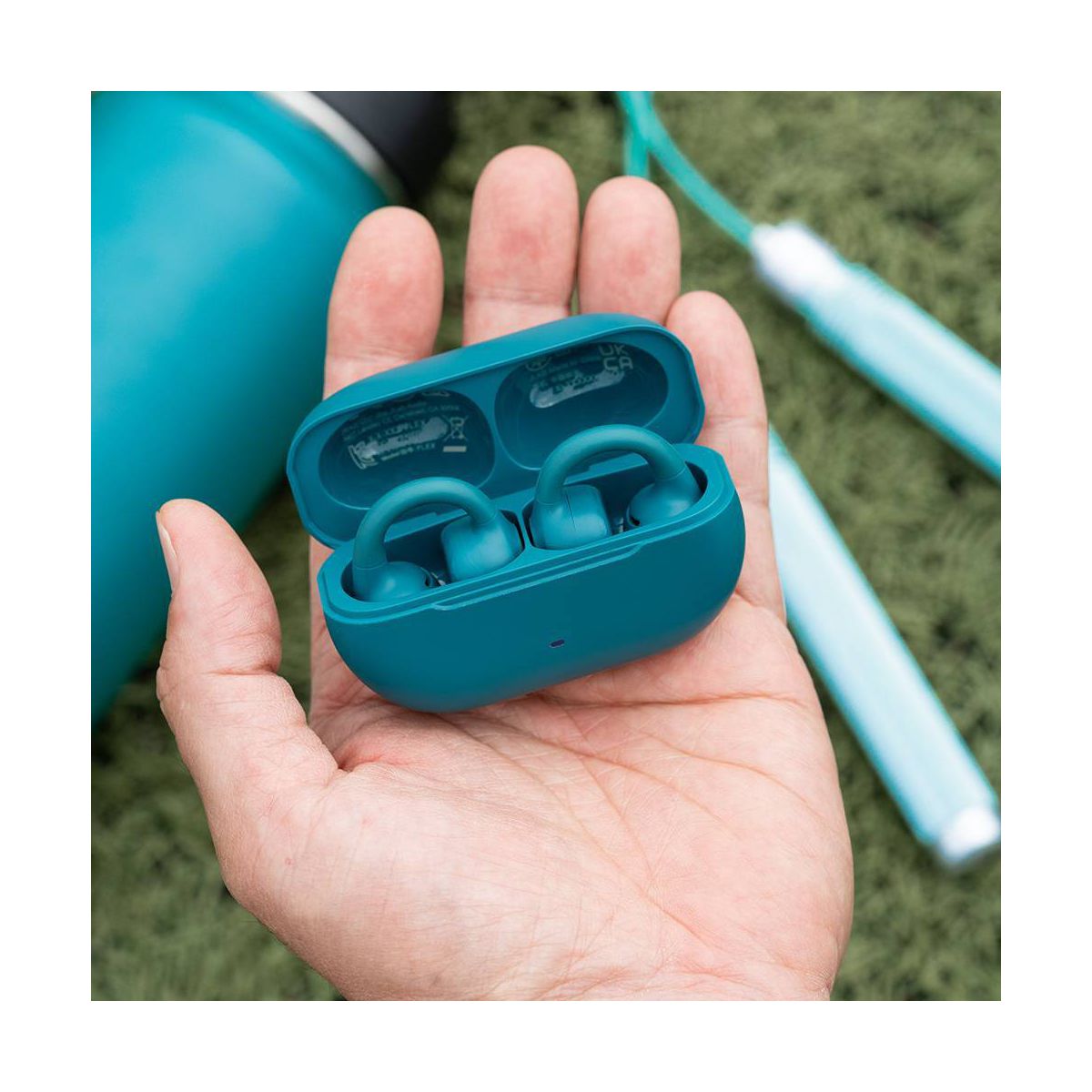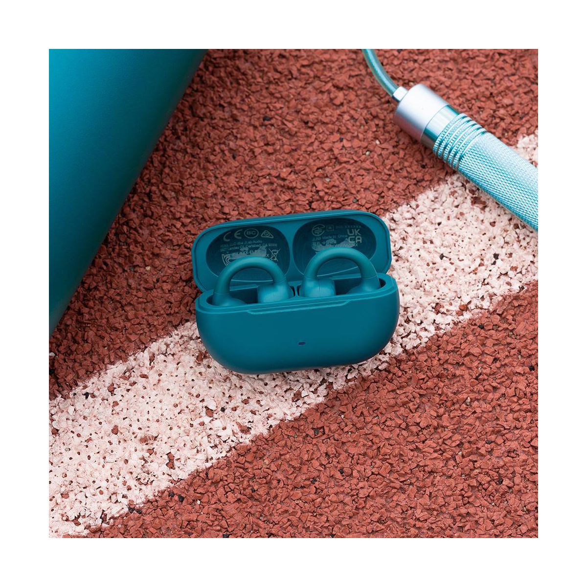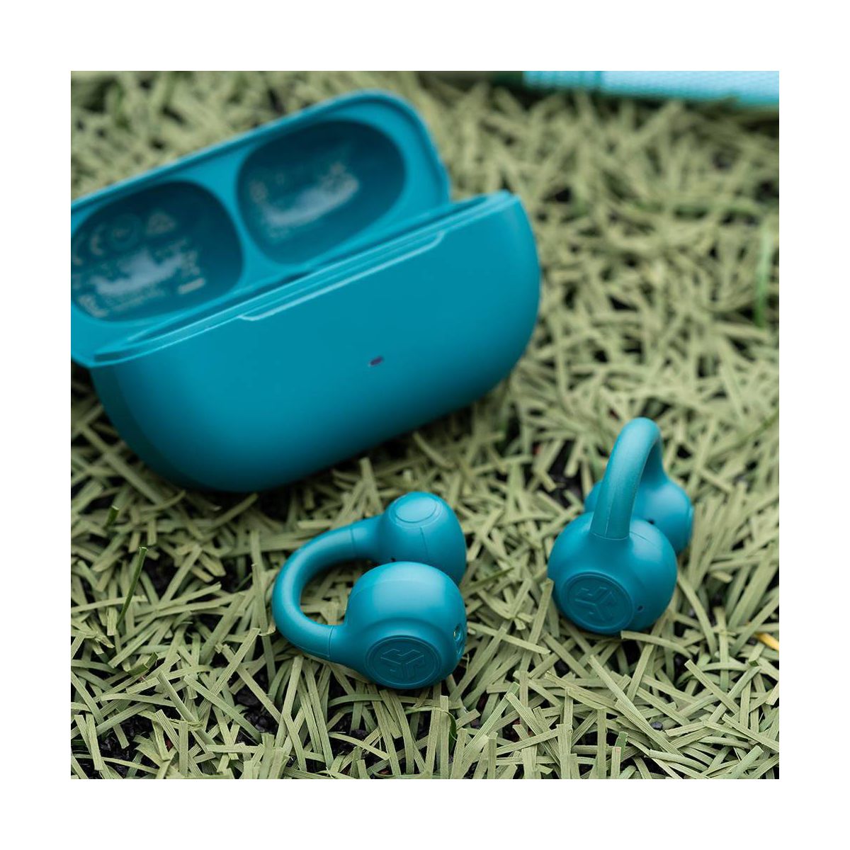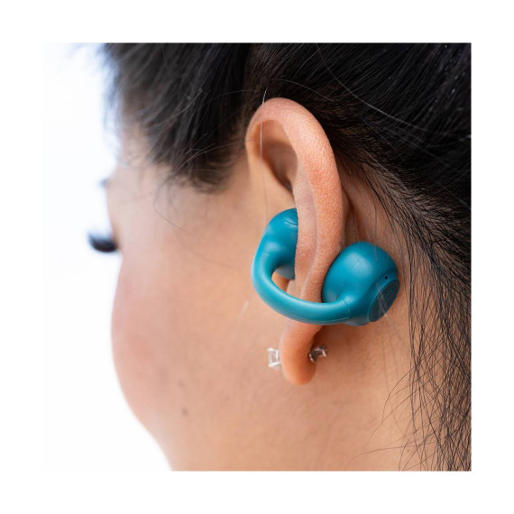 JLab Flex True Wireless Bluetooth Open-Ear Earbuds - Teal: Silicon Cushion & Built-In Mic