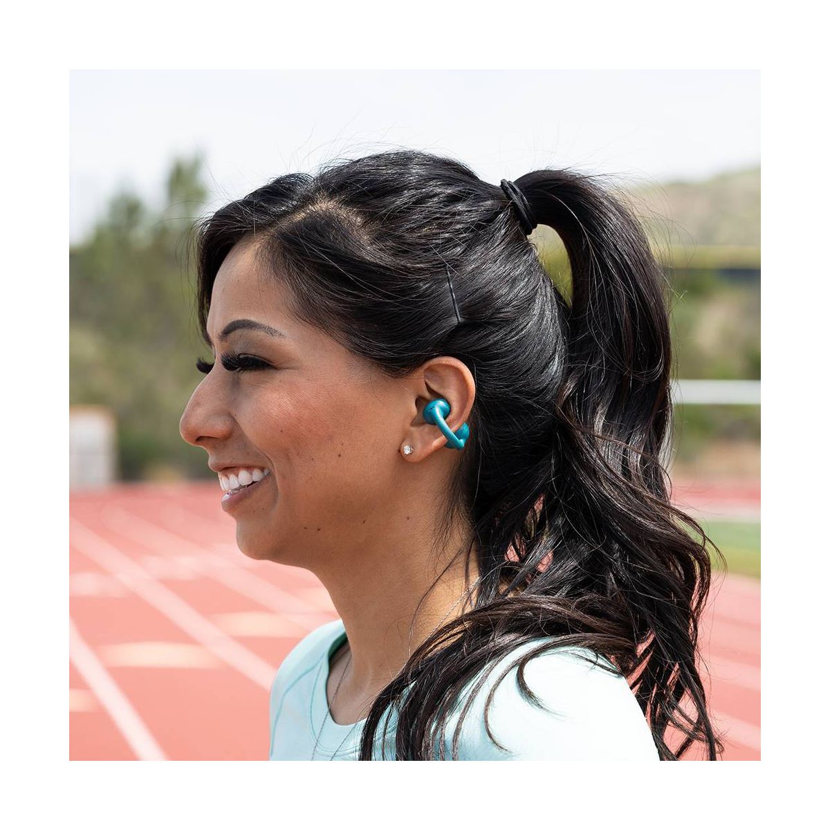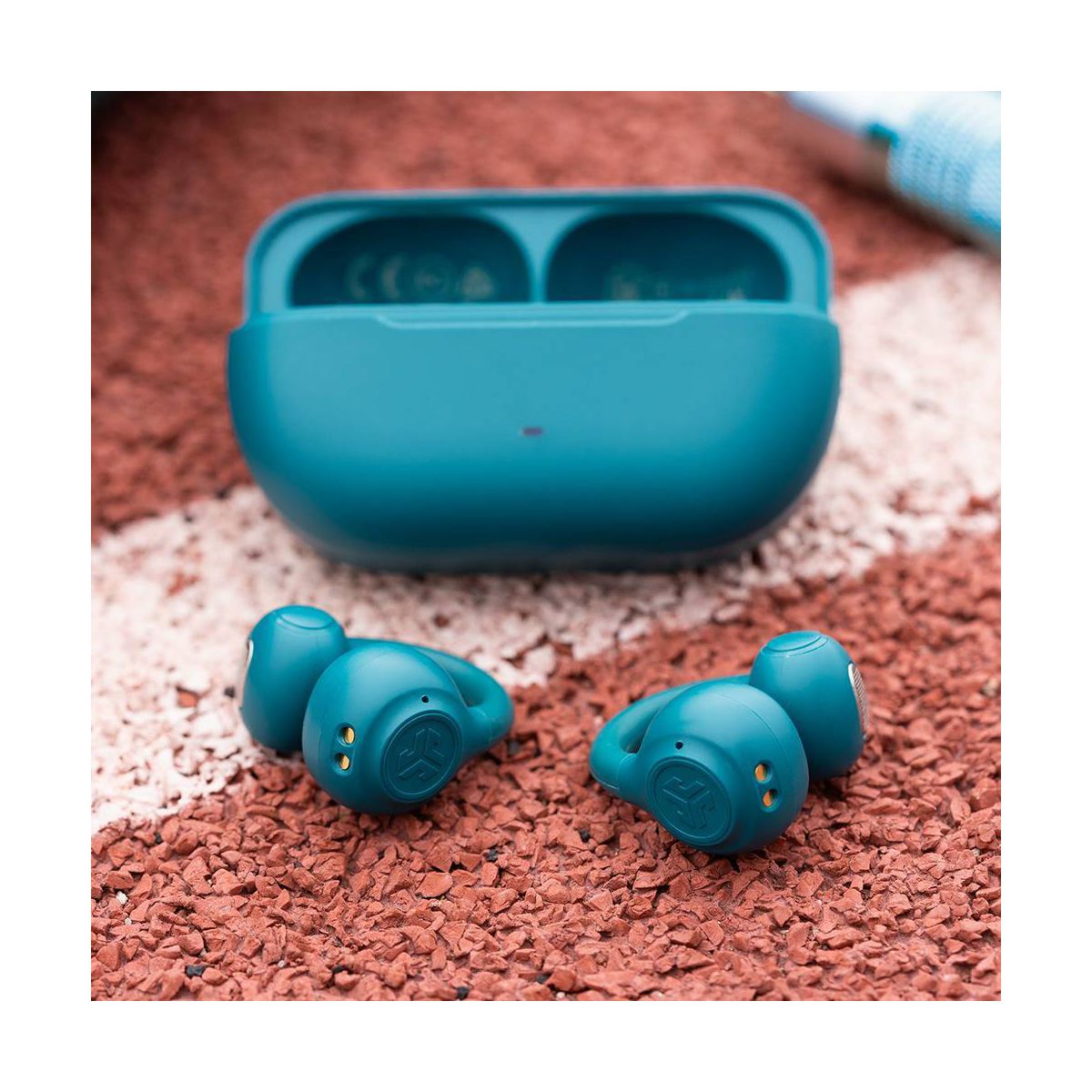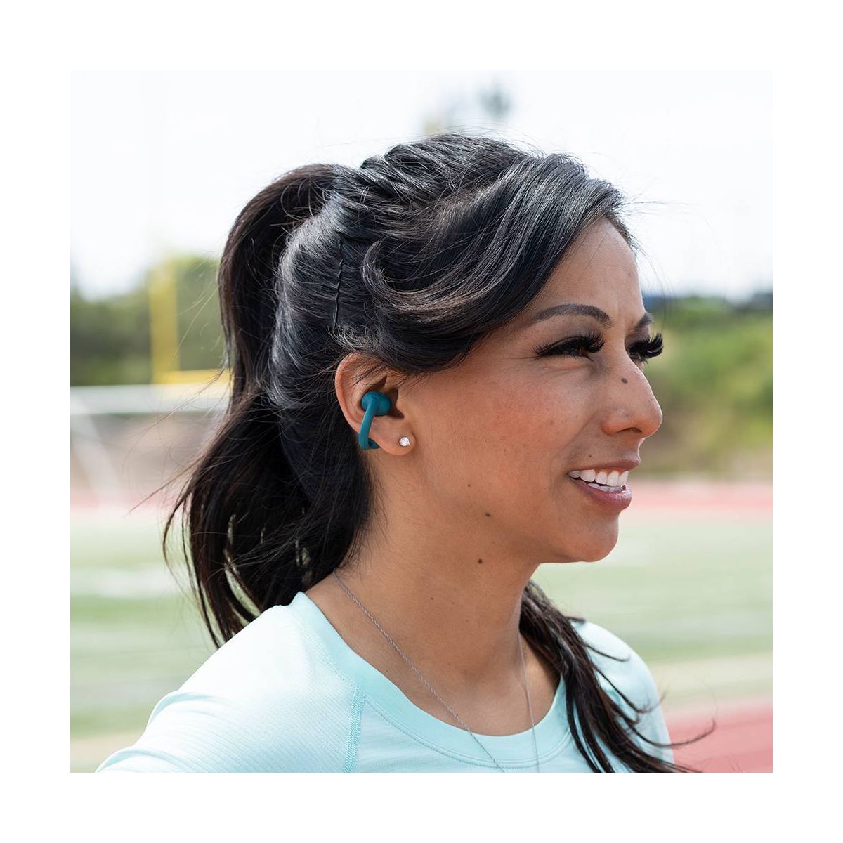 JLab Flex True Wireless Bluetooth Open-Ear Earbuds - Teal: Silicon Cushion & Built-In Mic